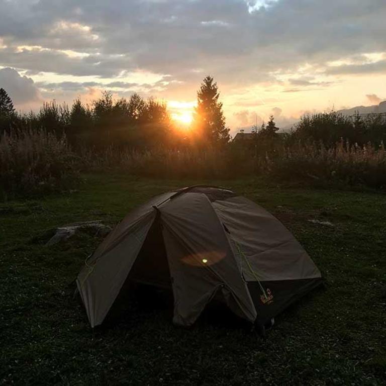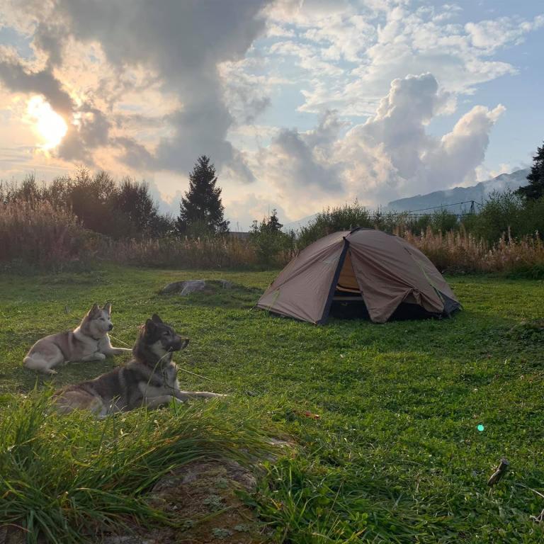 Es ist Sonntag und wir treffen uns um 9 Uhr beim Campingplatz in Arvenbüel. Dieser wurde erst in diesem Sommer eröffnet und aus einem grossen Parkplatz entstand ein schöner Platz zum Campen. Hinter dem Platz gibt es ein paar grosse Feuerstellen, wo man auch in kleineren Gruppen grillieren kann. Im Anschluss befindet sich eine schöne Wiese, wo man zwischen den hohen Grässern sein Zelt aufstellen kann. Auch wir werden die Nacht zu Zweit mit zwei Hunden hier verbringen.