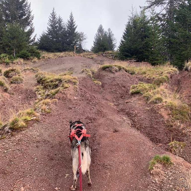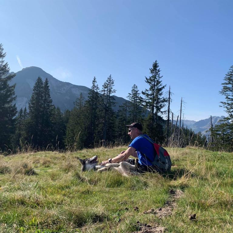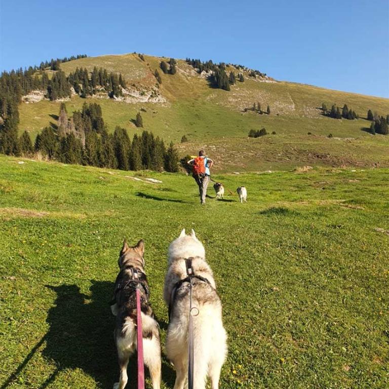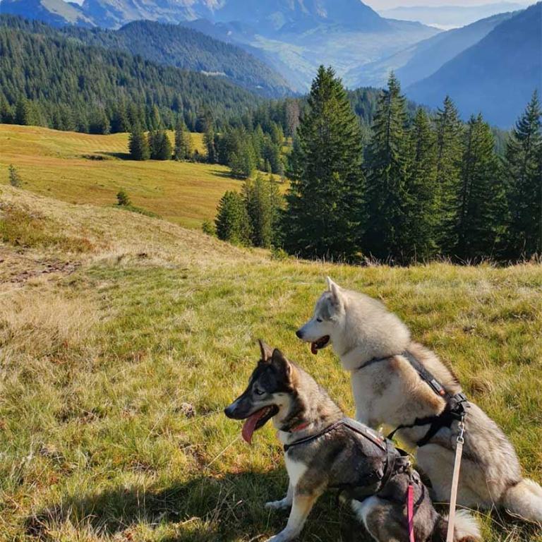 Heute unternehmen wir eine kleinere Wanderung bei schönem Wetter. Wir starten beim Campingplatz und machen uns zu Viert mit unseren Hunden auf den Weg. Unser Ziel ist die "Vordere Höhe". Die Rundwanderung führt uns durch den schattigen Wald auf eine schöne Alpenlandschaft und dann wieder zurück zum Ausgangspunkt. Es war zwar nicht sehr anstrengend heute, aber wir haben uns unsere Würste und Steaks auf dem Grill trotzdem verdient. So geniessen wir gemeinsam den schönen Abend und die erholsame Gegend hier. Auch die Hunde geniessen es bei uns am Stakeout und werden mit Leckerlis verwöhnt. Zwei von den Hunden müssen leider heute wieder nach Hause, weil wir für die morgige Tour nur zwei Hunde mitnehmen können.