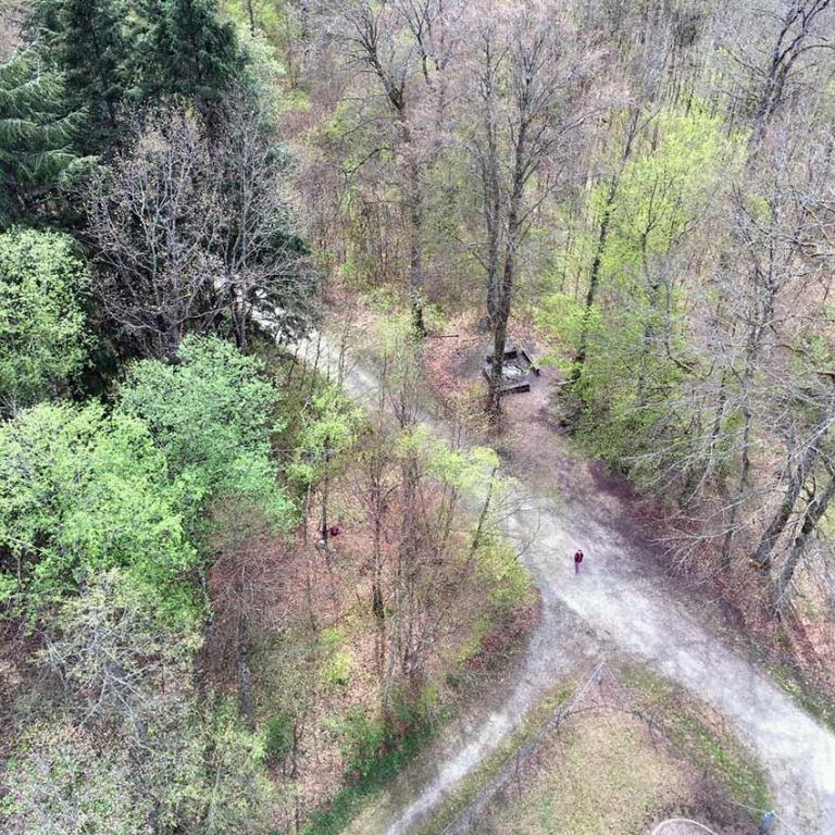 Der zweite Aussichtsturm auf unserer Tour ist insgesamt ganze 96 Meter Hoch. Leider kann man nur auf die 42 Meter hohe Plattform. Aber von hier aus sehen wir bis zum Schwarzwald. Heute ist ideales Wanderwetter mit super Weitsicht. Es ist übrigens der Sendeturm Cholfirst. Wer schwindelfrei ist, der sollte hier unbedingt mal hoch.