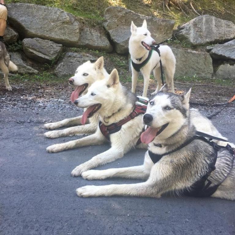 Am heutigen wunderschönem Sommertag starten wir unsere Tour in Küblis (GR) und sind zu Viert mit sieben Hunden unterwegs. Weil es recht warm ist, sind die Hunde froh um jede Abkühlung. Unser Weg führt an vielen Wasserquellen vorbei, die durch den immer noch tauenden Schnee entstanden sind. Auch wir kommen ziemlich ins schwitzen, wenn wir dann unser Ziel in Klosters erreicht haben. Dort wartet auch schon unser Fahrer für den Rücktransport auf uns.