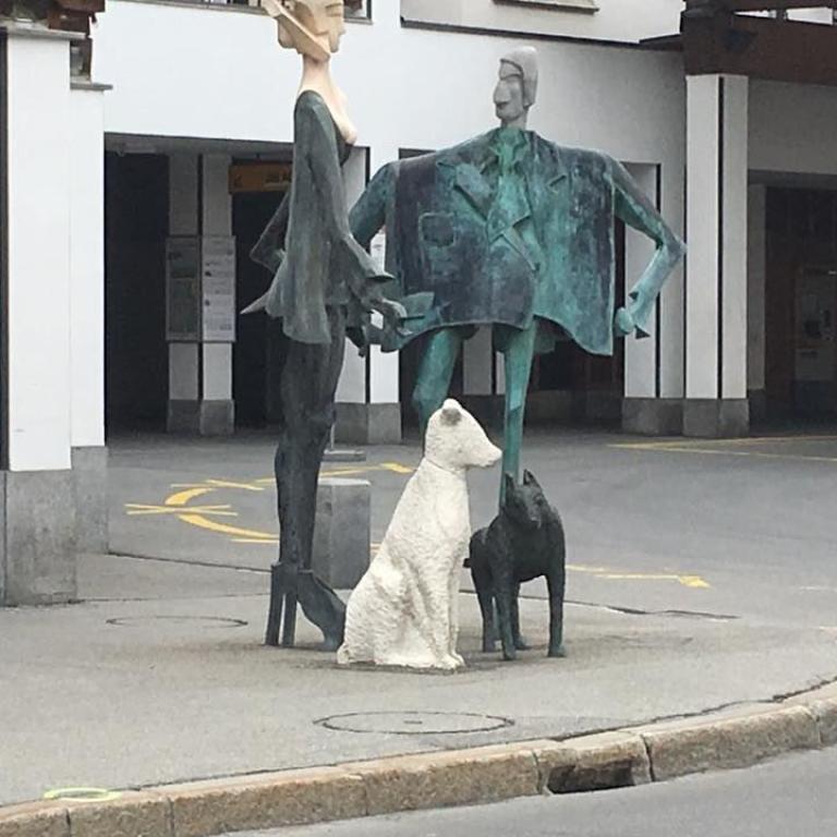 Am Ziel in Lenzerheide angekommen, fahren wir dann mit dem Postauto wieder nach Chur zurück. Auch die Hunde, die nun doch auch ziemlich müde geworden sind, geniessen die bequeme Rückreise. Übrigens müssen wir für die Mitfahrt der Hunde auch bezahlen, das ist halt nun mal in der Schweiz so.