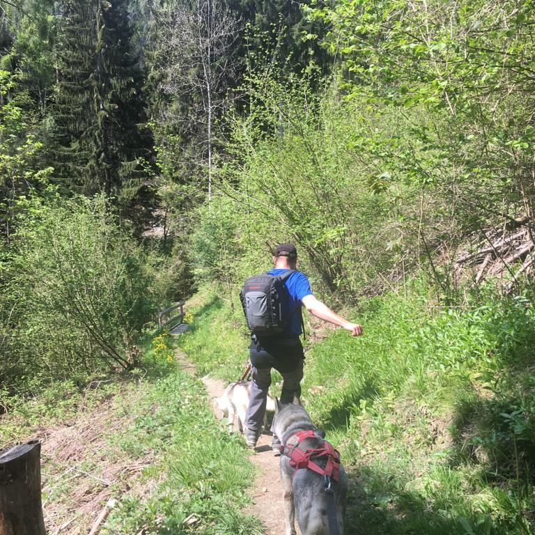 Heute bin ich für einmal mit zwei Hunden an der Leine unterwegs. Dies hat beim Aufstieg gewisse Vorteile, wenn beide Hunde ziehen. Gleichzeitig muss man sich aber auch mehr konzentrieren, um immer beide Hunde im Auge zu behalten.