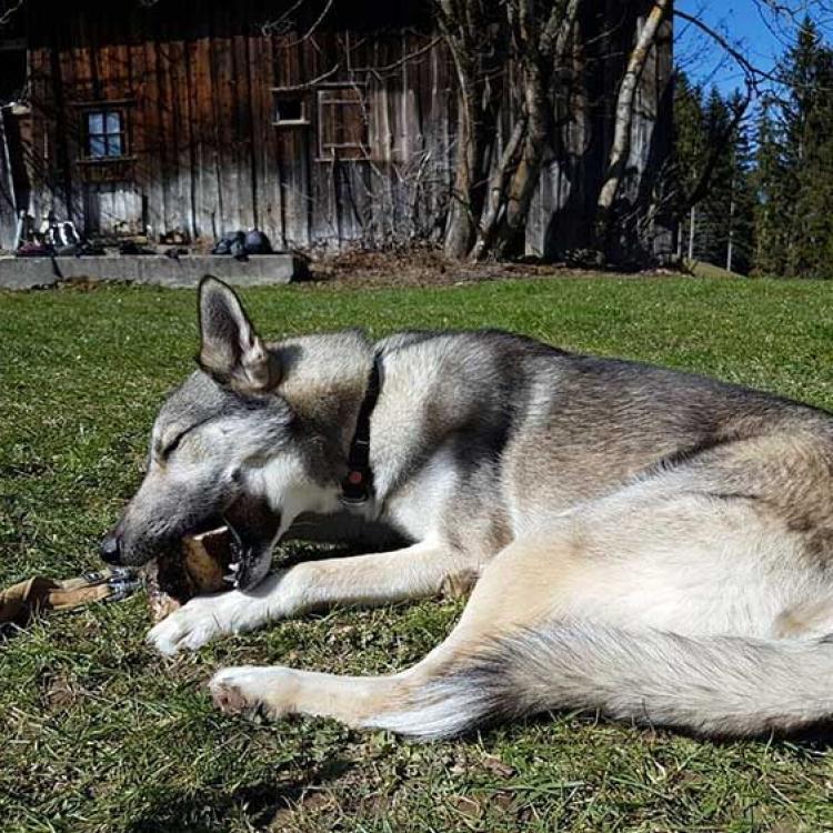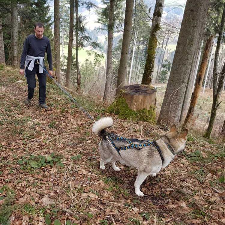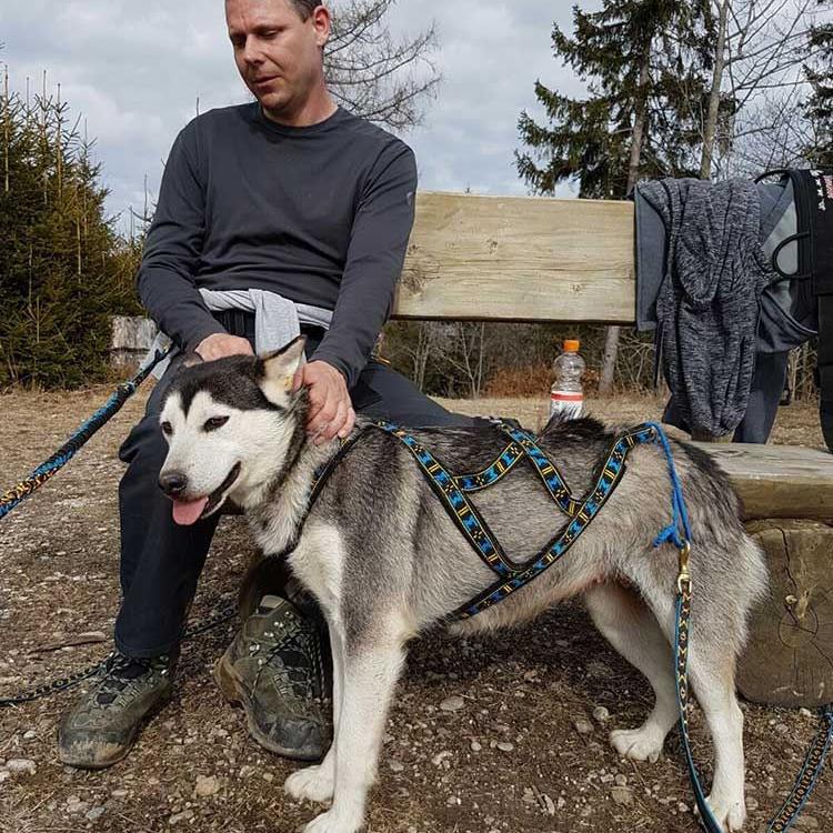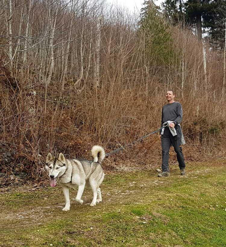 Meine heutige Partnerin auf vier Pfoten heisst Alaska und die zieht mich ganz schön den Berg hinauf. Alaska ist 2 1/2 Jahre alt und ein Husky mit etwas Malamute in den Genen.