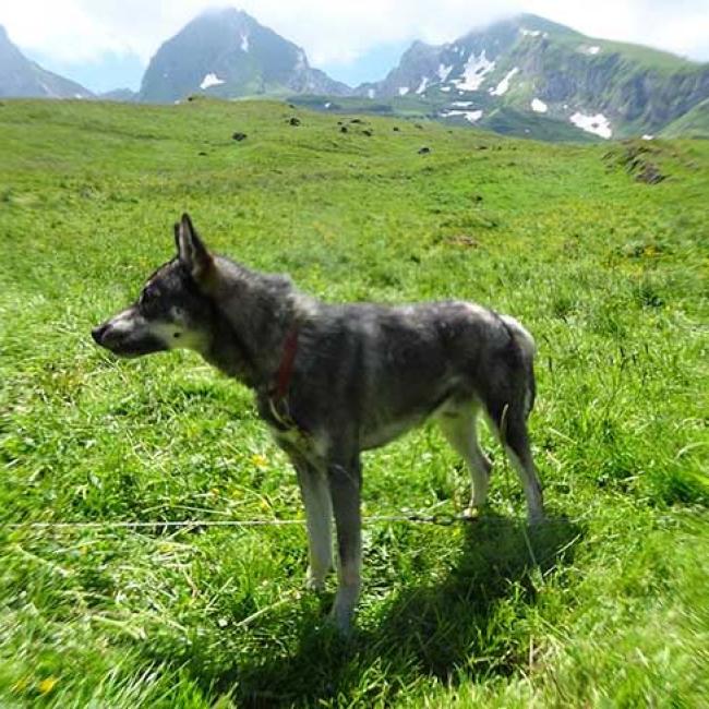 Am heutigen wunderschönen Sommertag scheint die Sonne, aber es ist zum Glück nicht so heiss. Also ideales Wetter für ein weiteres Husky-Trekking auf die schöne Alp Selamatt im Toggenburg.
