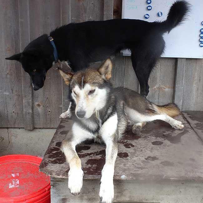 Den Huskys macht der Regen nichts aus, die freuen sich, dass es nicht so heiss ist und zeigen sich sehr motiviert und arbeitswillig. Wir übrigens auch.