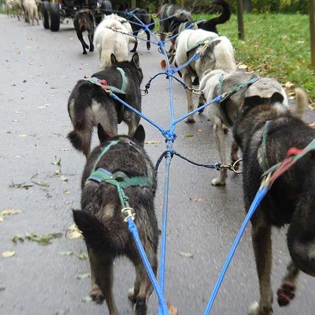 Der Schwierigste Teil ist ja immer das Einspannen der Hunde an die Zugleine. Bei einem Team aus 12 Hunden, komme ich da schon recht ins schwitzen, bis jeder an seinem Platz ist. Die Vierbeiner sind natürlich aufgeregt und können es kaum erwarten, bis es endlich los geht. Darum strengen wir uns an, damit wir möglichst bald starten können.