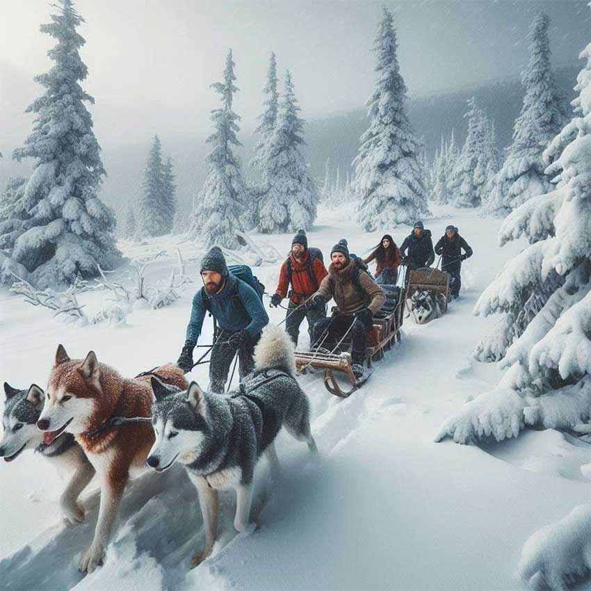 Eines Tages trafen Sarah und ihr Team auf eine Gruppe von Wanderern, die in Schwierigkeiten waren. Die Wanderer haben sich verlaufen und brauchten dringend Hilfe, um zurück in die Stadt zu gelangen. Sarah und ihre Huskys boten ihnen an, sie zurückzubringen. Die Huskies arbeiteten zusammen und zogen den Schlitten durch den tiefen Schnee, bis sie alle sicher in der Stadt ankamen.