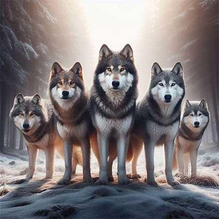 Von da an war Koda nicht mehr allein. Er rannte mit den Wölfen durch den Schnee, spürte die Freiheit und die Verbundenheit. Und wenn der Vollmond am Himmel stand, heulten sie gemeinsam – Husky und Wolf – eine verschmolzene Stimme, die durch die Wälder hallte.