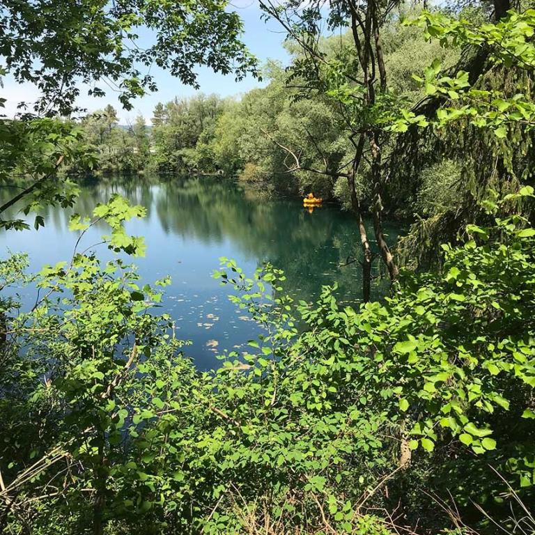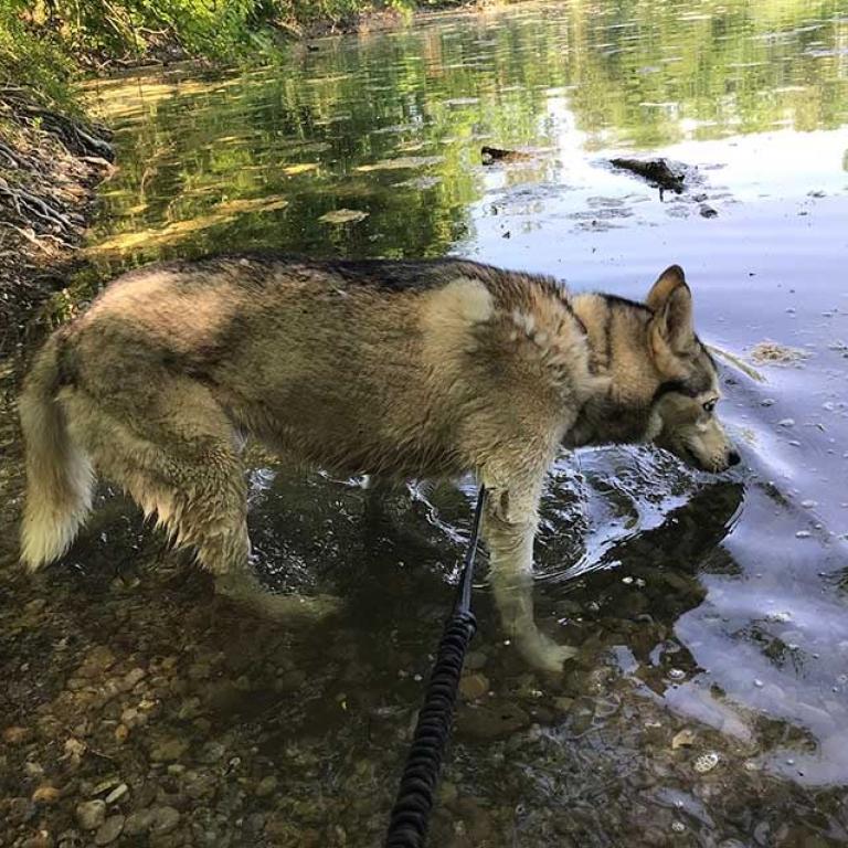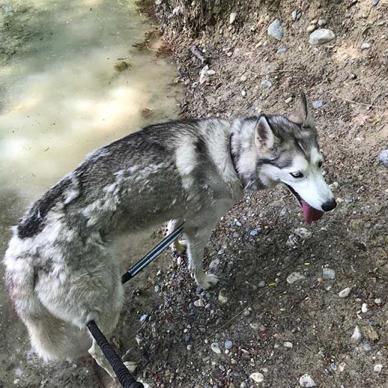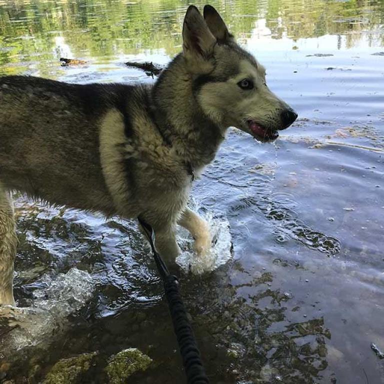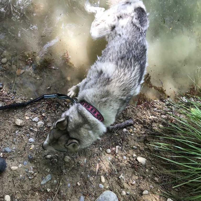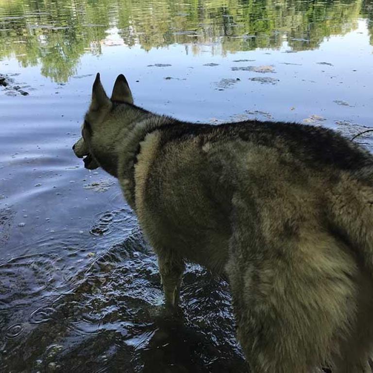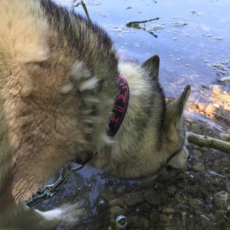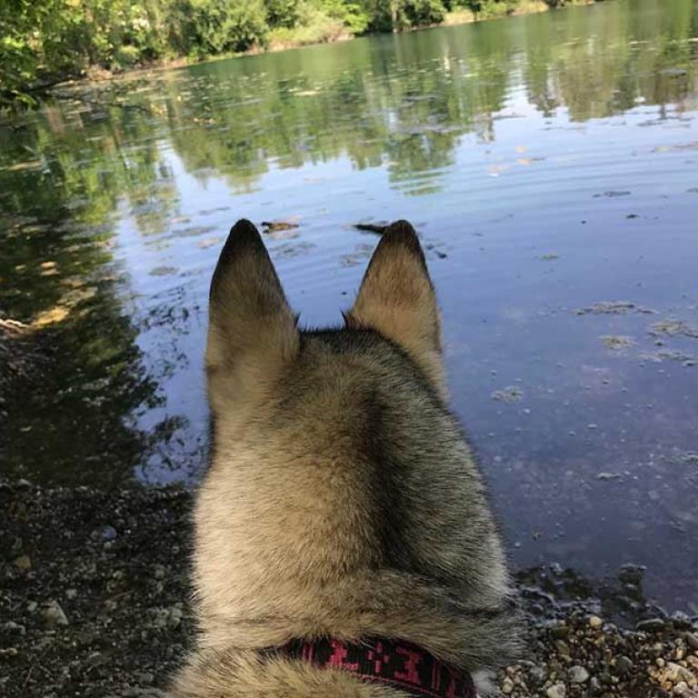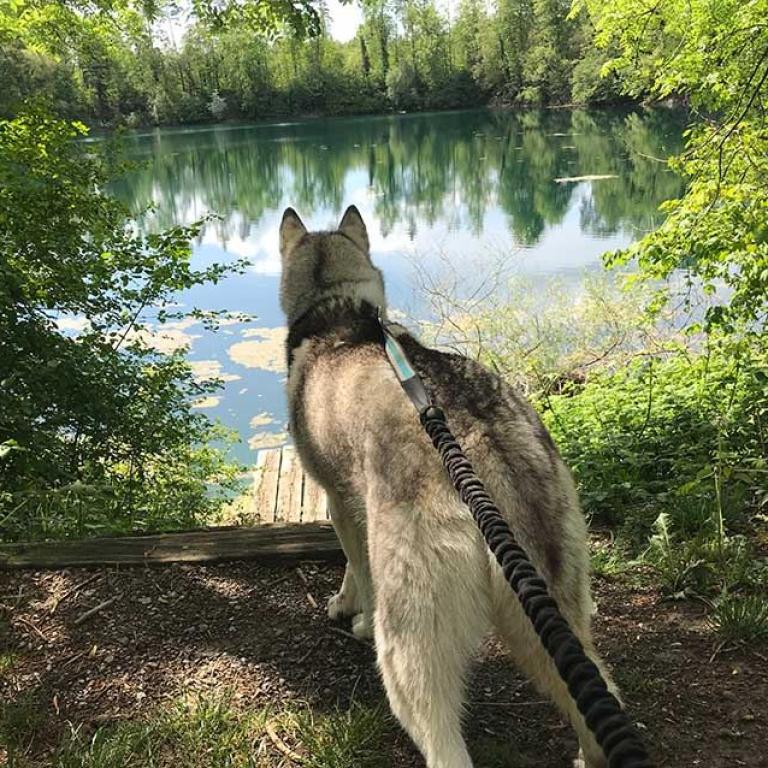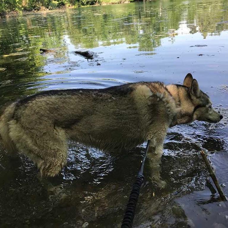 Hier gibt es immer viele Enten und Vögel zu beobachten, manchmal auch Leute, die am baden oder am fischen sind. Und eine Abkühlung im Wasser tut auch gut. Inuik geht nur selten tiefer als bis zum Bauch ins Wasser, aber sie geniesst jede Gelegenheit zum "plantschen".