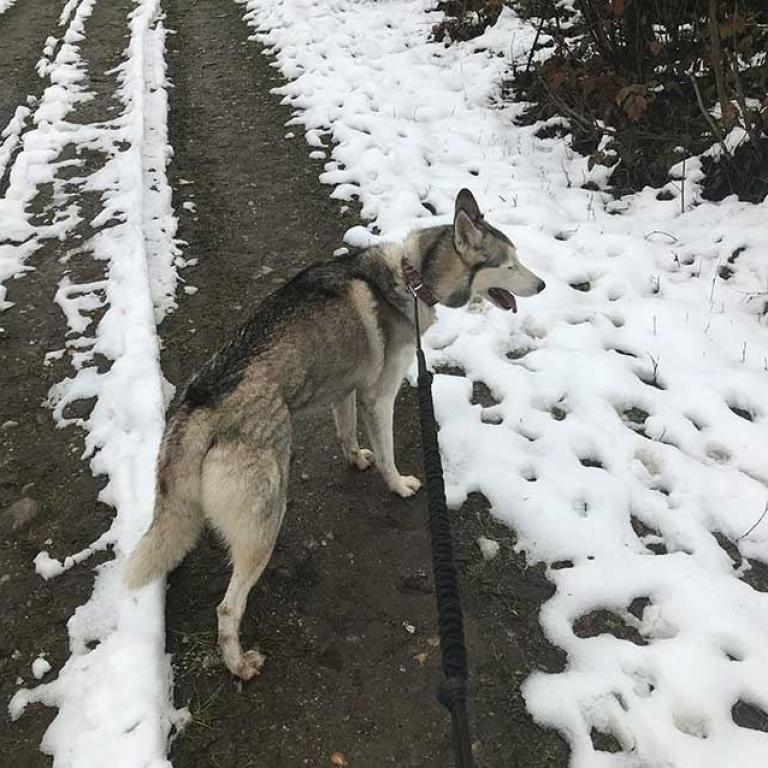 Heute geniessen wir ein schönes Trekking mit dem noch übrig gebliebenen Schnee. Inuik geniesst natürlich das "Weiss", obwohl sie sich natürlich richtig viel Schnee wünscht. Datum: 10.12.2020Ort: Märstetten (TG)