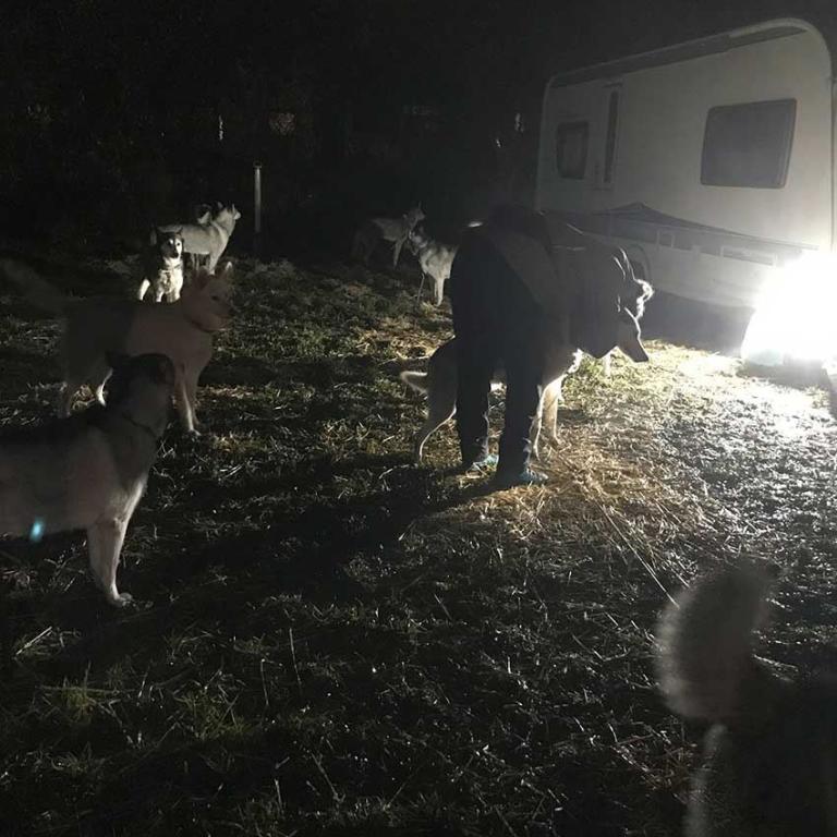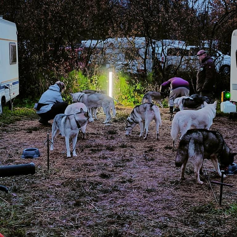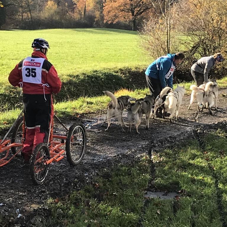 Die schöne und abwechslungsreiche Rennstrecke wurde nur leicht geändert und durch den vielen Regen hat sich ein kleines Stück über den Acker in eine matschige Angelegenheit verwandelt. Auch diesmal war der letzte Streckenteil, welcher durch eine Wiese führte, für den Musher und auch für die Hunde besonders anstrengend. Aber alle Hunde in unserem Rennteam haben das Ziel ohne Zwischenfälle erreicht.